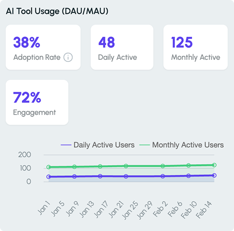 See which teams are actively using AI tools and which teams are adopting them more slowly. This visibility helps leaders understand how AI usage spreads across the organization.