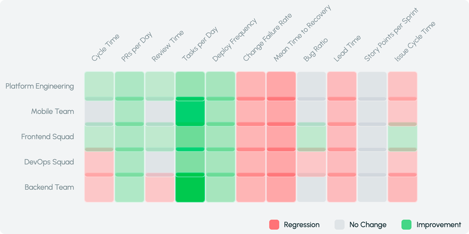 Measure how AI adoption changes engineering productivity, delivery speed, and team performance.